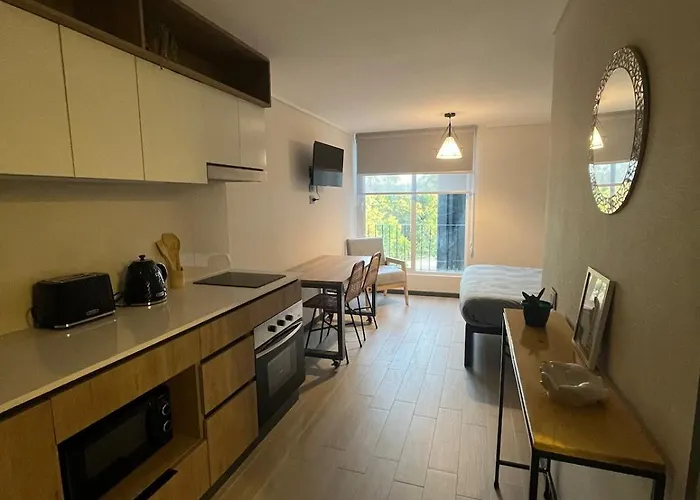 Además de sus comodidades de autoservicio, como una cocina completa, el apartamento Estudio Con Aire Acondicionado En Parque Quinta Normal también ofrece a sus huéspedes una zona de comedor. La estación de autobuses más cercana, San Pablo / Villasana, está a tan solo 5 minutos a pie. Dispone de una terraza para que los huéspedes se relajen después de un día ajetreado.